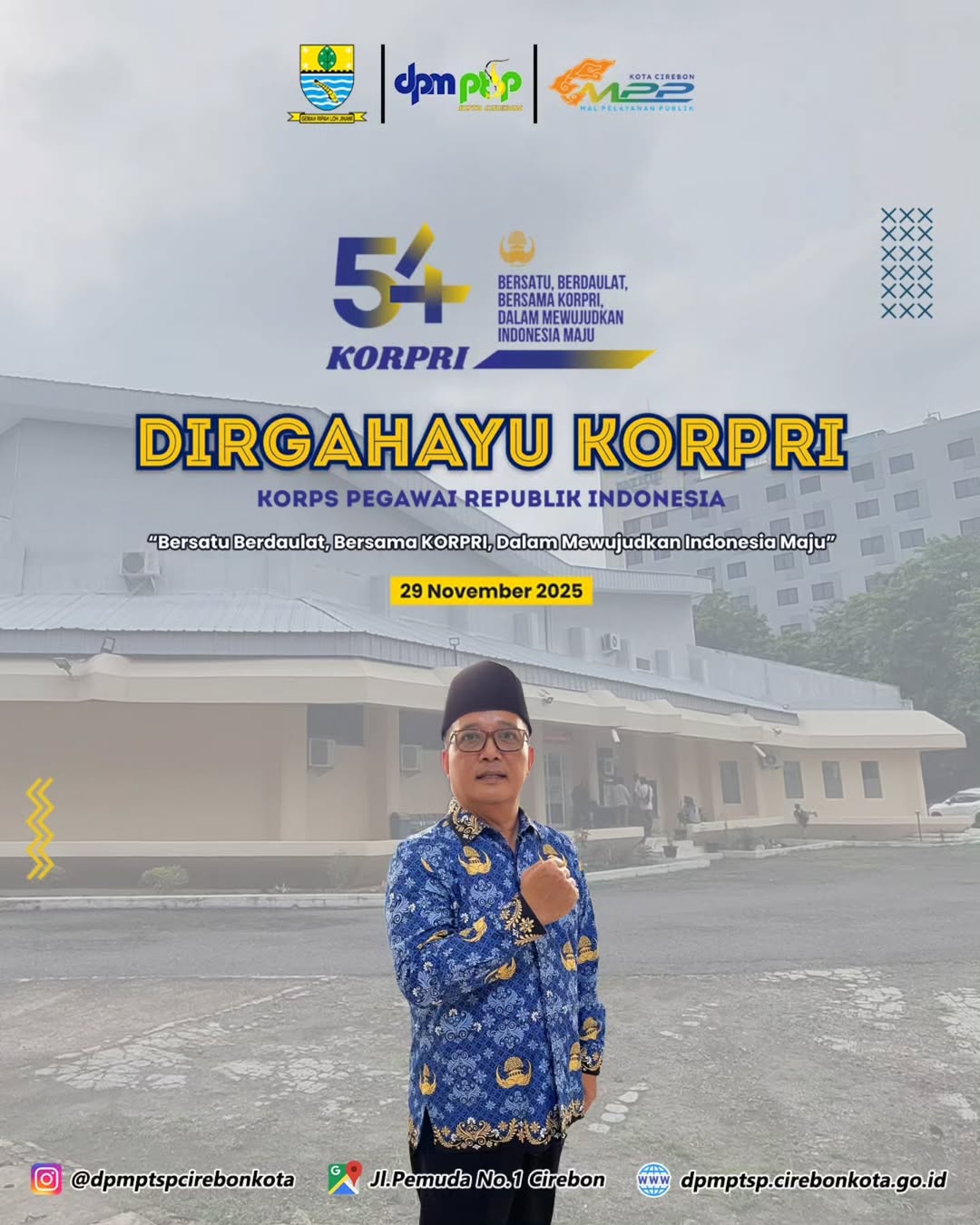 Hallo Sobat OSS,! 🇮🇩🇮🇩🇮🇩 Keluarga Besar Dinas Penanaman Modal dan Pelayanan Terpadu Satu Pintu serta Mal Pelayanan Publik Kota Cirebon, mengucapkan selamat hari ulang tahun KORPRI ke-54. Bersatu, Berdaulat, Bersama KORPRI Dalam Mewujudkan Indonesia Maju. Teruslah menjadi garda terdepan pelayanan publik yang membanggakan. @pemdakotacrb @dpmptsp.jabar @prokompimkotacirebon @effendiedo65 @sitifarida.official ____________________________________ Follow Instagram @dpmptspcirebonkota untuk update informasi seputar pelayanan Mal Pelayanan Publik Kota Cirebon 🔗 #HUTKORPRI54 #mppkotacirebon #pemdakotacirebon #mallpelayananpublikkotacirebon #kotacirebon banggajadiwongcerbon pemdakotacirebon pemerintahkotacirebon dpmptspkotacirebon dpmptspkotacirebon2025 kotacrb kotawali kotaudang kotacirebon cirebon cirebonsmartcity jawabarat indonesia KementerianInvestasi InvestasiTumbuhIndonesiaMaju
